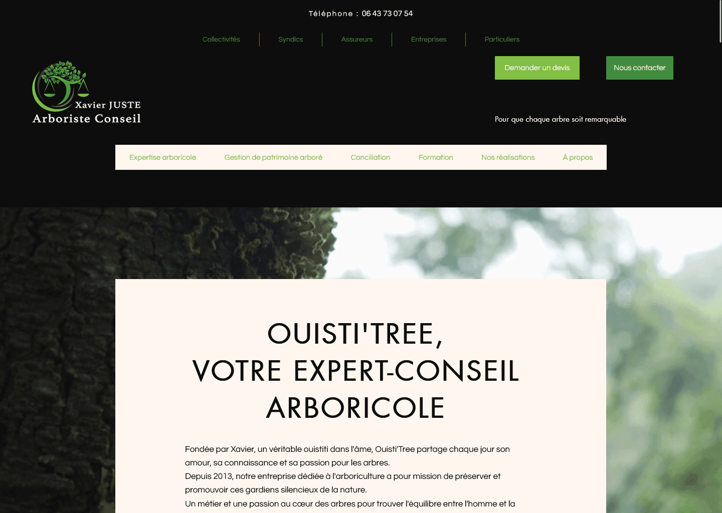 Refonte du site pour améliorer la navigation, organiser le contenu selon les besoins des utilisateurs, valoriser l'expertise arboricole et renforcer la visibilité en ligne.